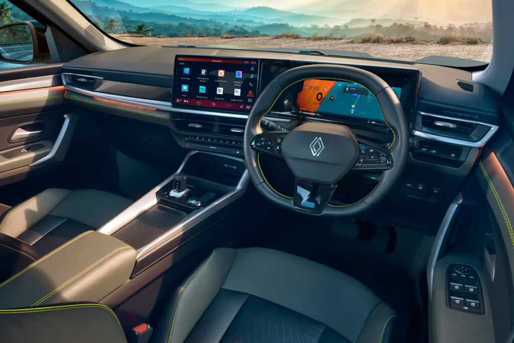 The Indian-built Renault Duster abandons the European model’s separated infotainment and instrument layout. Instead, it introduces a modern twin-screen setup, including: