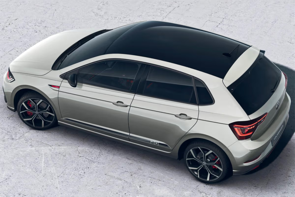 The two-tone color combinations with contrasting black roofs enhance the Edition 20’s visual appeal and help it stand out from standard Polo GTI models.